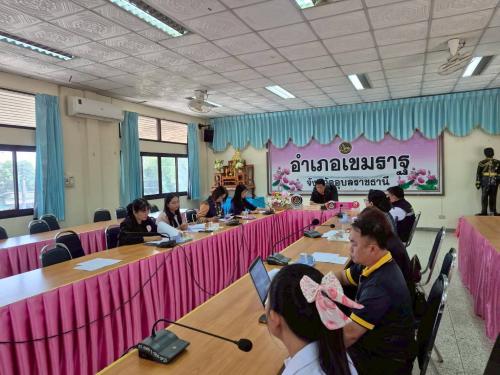 นายเดชภูวิส ภักดีสนิท นายอำเภอเขมราฐ เป็นประธานการประชุมคณะอนุกรรมการกลั่นกรองและติดตามการดำเนินงานกองทุนพัฒนาบทบาทสตรี ครั้งที่ 4/2569 โดยมี ดร.อนุรักษ์ ประทุมชาติ พัฒนาการอำเภอเขมราฐ เลขานุการจัดการประชุม
